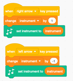 Create a variable called instrument. Let’s add a way to change the instrument with the left/right keys.
